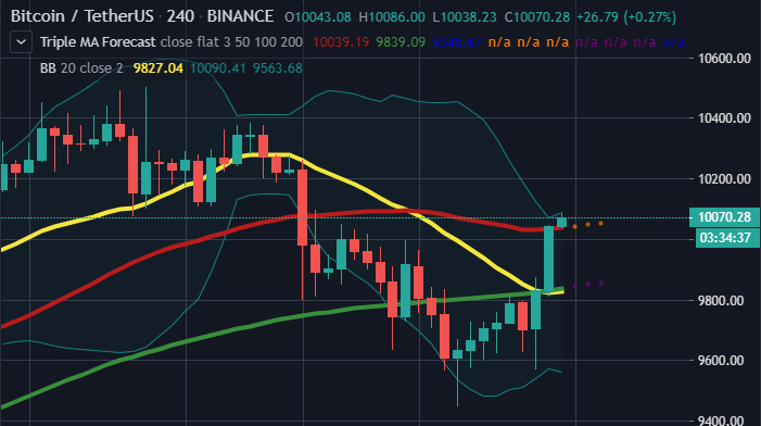 Geçtiğimiz günlerde yaşadığı düşüşle 9400 Dolara kadar düşen Bitcoin (BTC) hızlı bir toparlama sonrası tekrar 10.000 dolar seviyesine geri döndü.